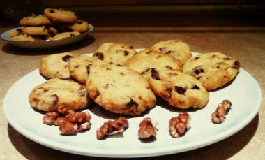 Вчера приготовила это песочное печенье. Сахар взяла обычный, так как коричневого не было, часть печенья сделала с грецкими орехами и вяленой клюквой, а часть - с изюмом. Понравилось сочетание грецких орехов и клюквы. Получилось очень вкусное, нежное, рассыпчатое печенье. И красивое очень:) спасибо большое автору за рецепт, буду делать еще. Вот мой фотоотчетик